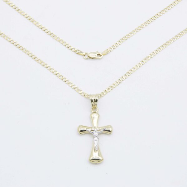 Honor your faith with this beautifully crafted Jesus Cross necklace made from genuine 10k Gold. This detailed Crucifix Pendant features a classic Crucifix Cross design with a polished finish that shines in both Yellow Gold and white gold accents.