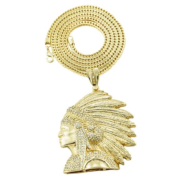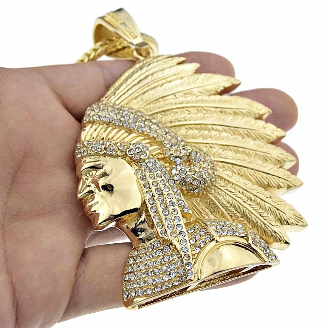 Oversized Apache Indian Chief iced out pendant