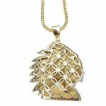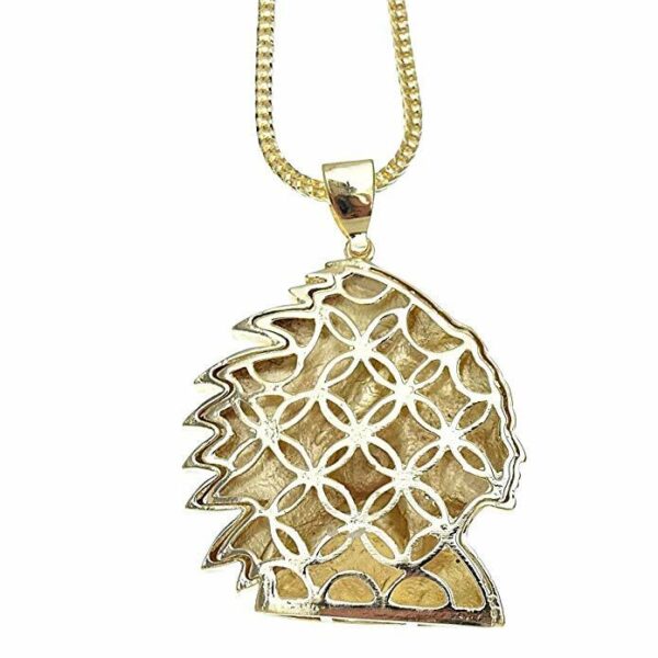Crafted with a high-quality yellow gold plated finish over a solid base metal core, this yellow gold pendant offers a rich, polished appearance without the premium price. The large pendant measures approximately 3 inches tall by 3 inches wide, making it a true statement piece whether worn solo or layered.