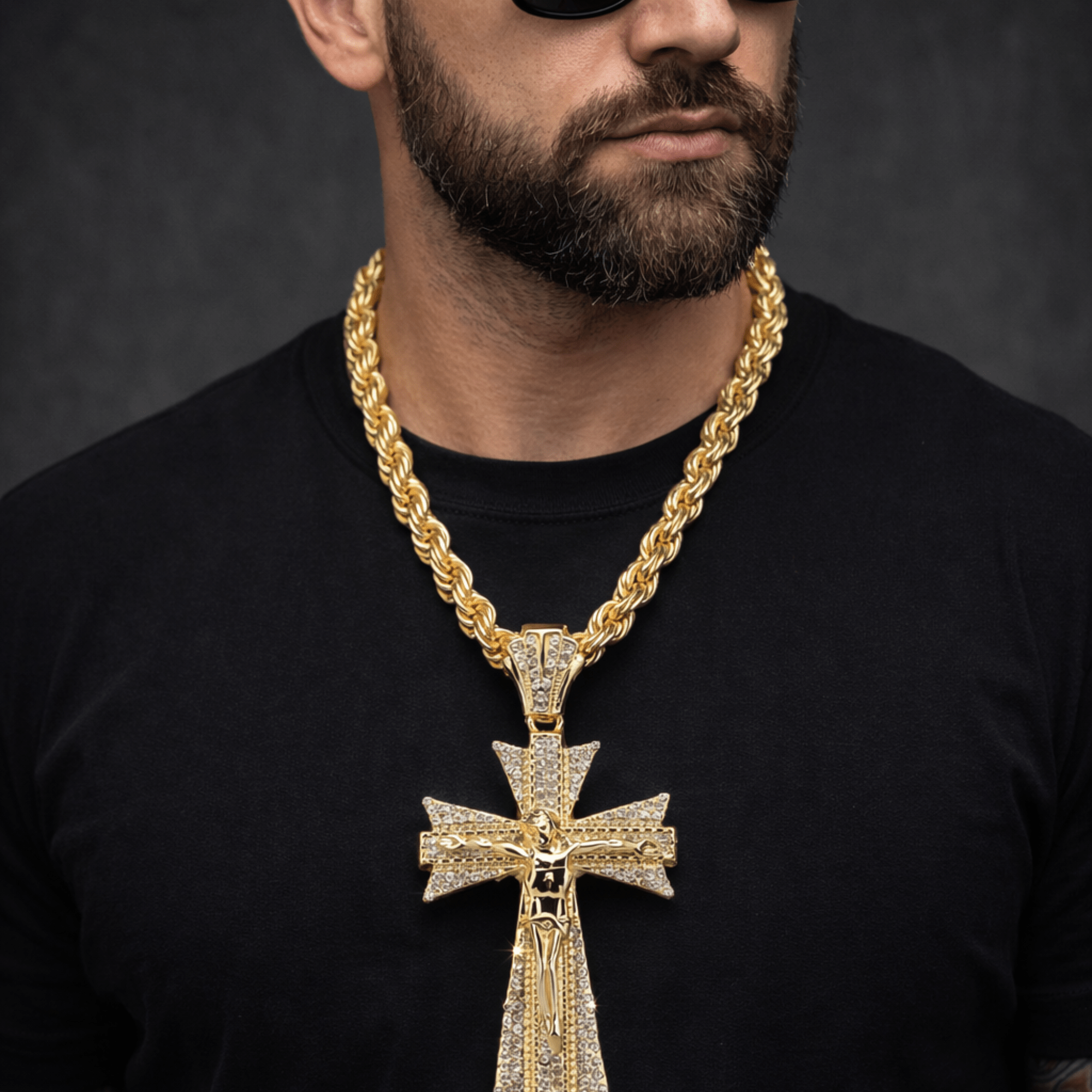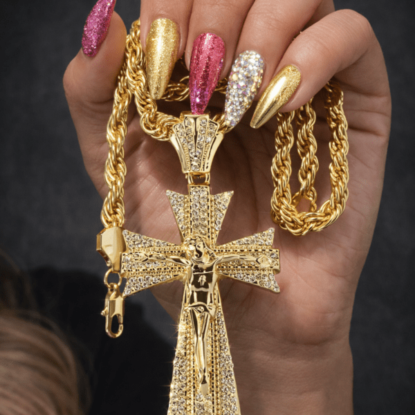 If you love the look of a diamond pendant, gemstone pendant, or sparkling cz jewelry, this design offers that same flashy energy in a wearable, fashion-forward piece. The Jesus iced out pendant look gives this yellow gold pendant style a premium appearance that works with both casual and dressy outfits. This piece is a must-have for anyone shopping for a cross pendant, stylish rope chains, or a bold gold rope chain to complete their collection.