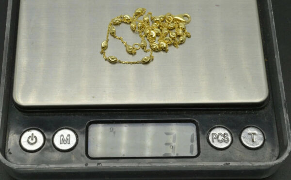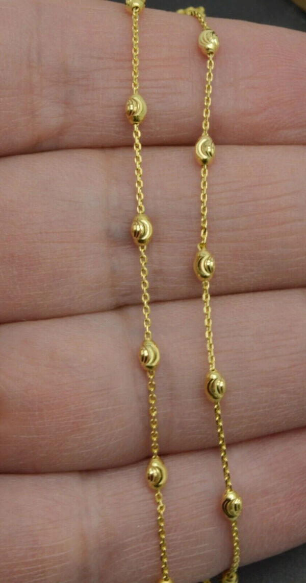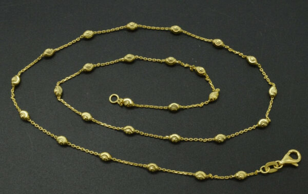 Designed as a classic BALL BEAD STATION NECKLACE, this piece blends modern minimalism with traditional yellow gold elegance. The precision diamond-cut texture enhances the light reflection, giving this DIAMOND CUT NECKLACE a luminous finish that elevates any outfit.