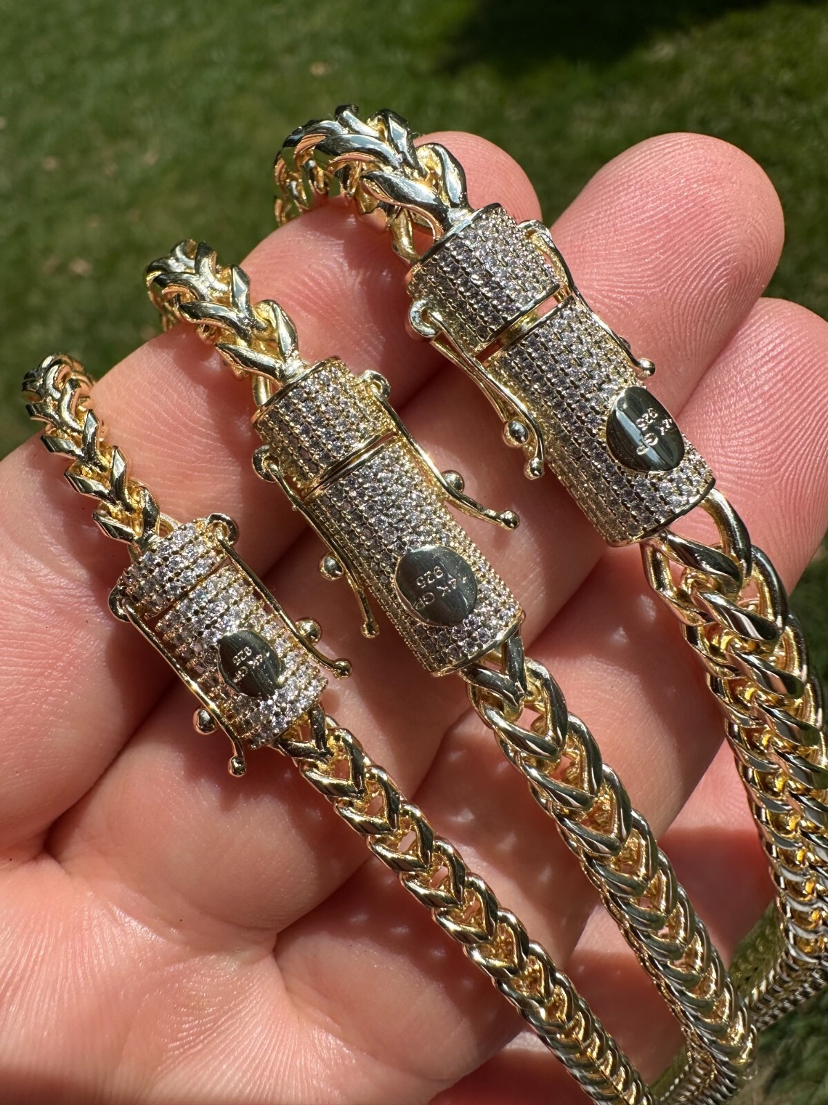 Upgrade your jewelry collection with this iced moissanite Franco link necklace and bracelet, crafted for both men and women who demand durability, luxury, and shine. This premium stainless steel Franco chain features a fully iced VVS D-Color moissanite box clasp that passes any diamond tester, delivering the brilliance of diamonds at a superior value.