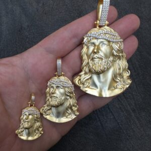 Medium is 1.5 (2.25 w bale) & weighs 21.6 grams (fits chains up to 8mm thick) 4.2ct moissanite stones.