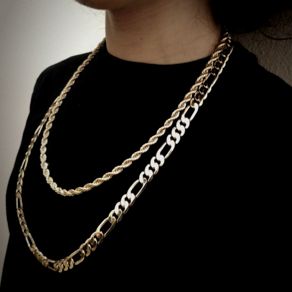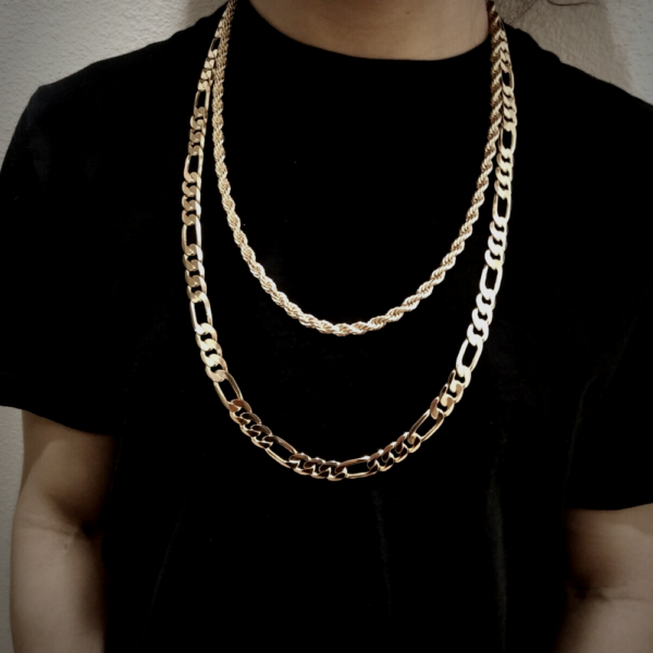 Chain Sizes: Rope 4mm x 24″ inches | Figaro 10mm x 30″ inches
