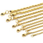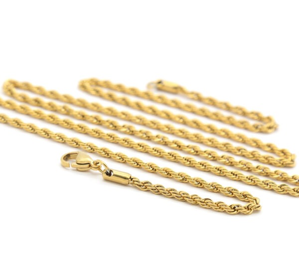 This durable gold rope chain offers the luxurious appearance of gold with the strength of stainless steel, making it a reliable everyday necklace choice. The twisted design gives this rope necklace depth and shine, making it one of the most popular styles in modern mens necklace fashion.