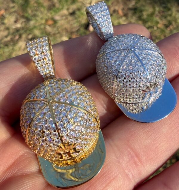 Turn heads with this fully iced moissanite pendant designed in a bold 3D New York baseball cap style. This luxury Pendant delivers heavy shine, premium craftsmanship, and undeniable presence — perfect for everyday drip or special occasions.