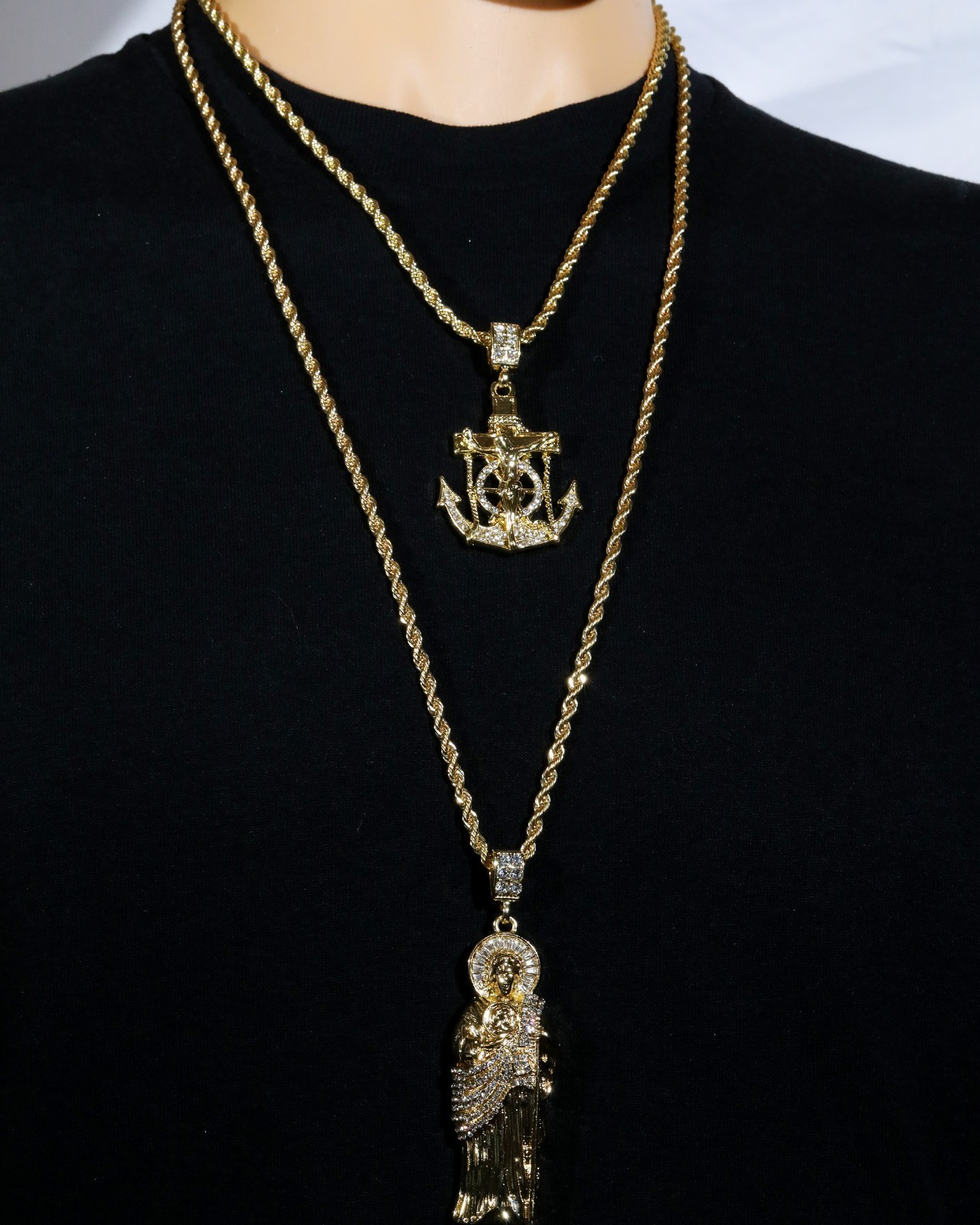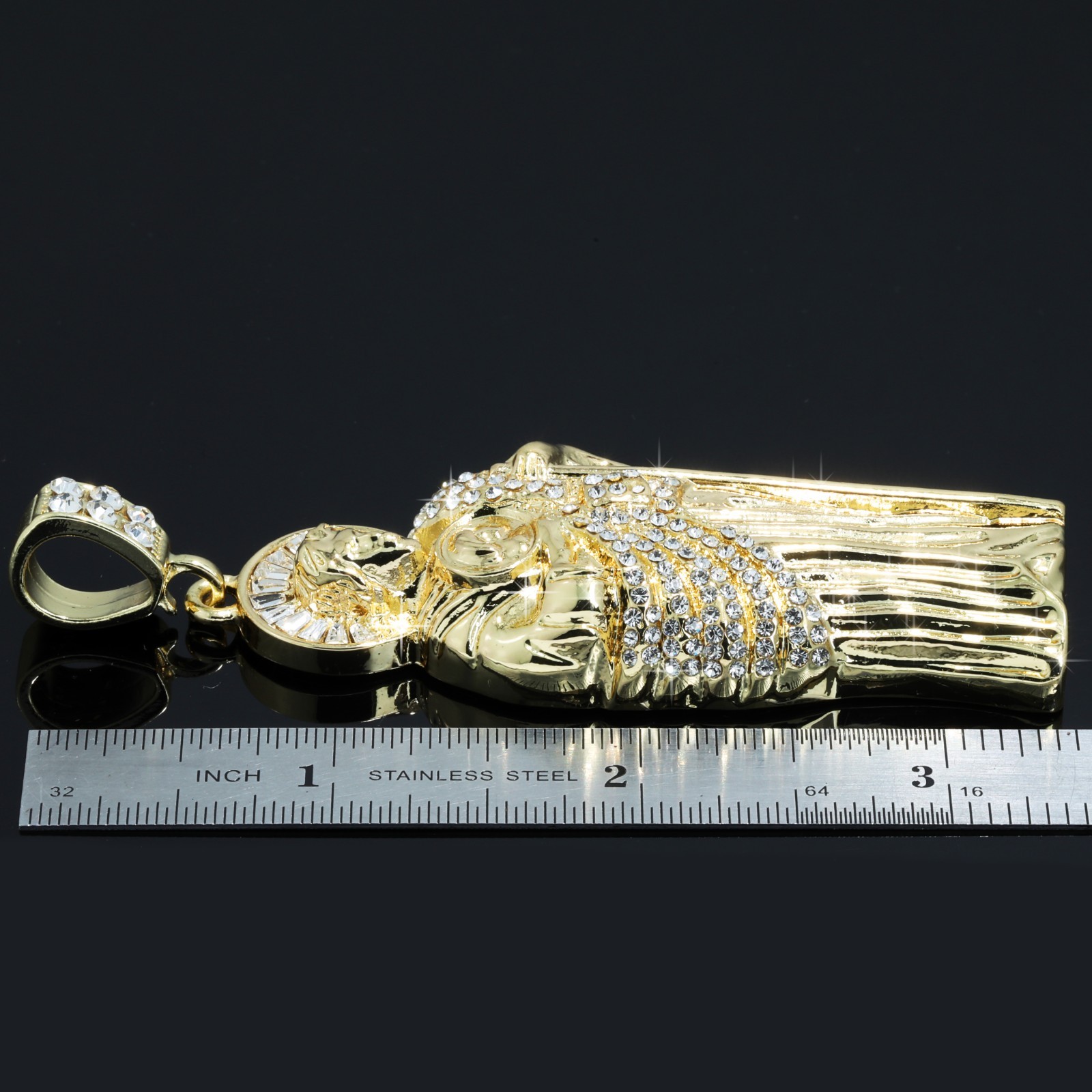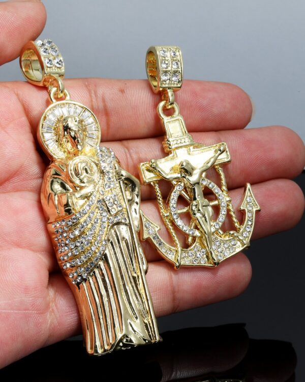 - Medium San Judas Pendant – detailed design, flooded with clear CZ stones
