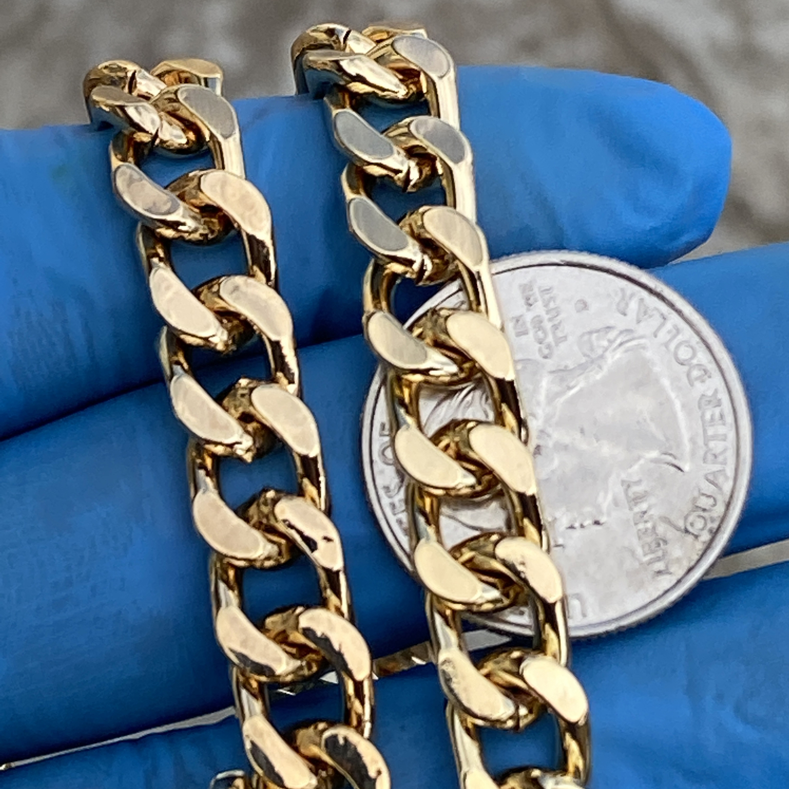 Paired with a heavy 30-inch Cuban link chain, this gold Cuban link necklace offers a classic hip hop look with modern edge. The 8mm Cuban link chain is secured with a sturdy lobster clasp for reliable, everyday wear. Crafted with an 18K gold plated finish over a solid alloy metal core, this cuban link necklace provides the look and feel of luxury at an accessible price point.