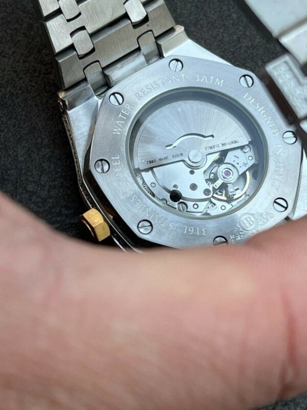 This stunning moissanite watch features large stones throughout the entire design, not small chips, allowing the diamonds to shine with maximum brilliance. The high-precision automatic mechanical movement uses a 21-jewel Japanese movement, delivering smooth sweeping seconds without the need for a battery. It combines Italian jewelry craftsmanship with precision engineering to create a reliable and luxurious watch built to perform.