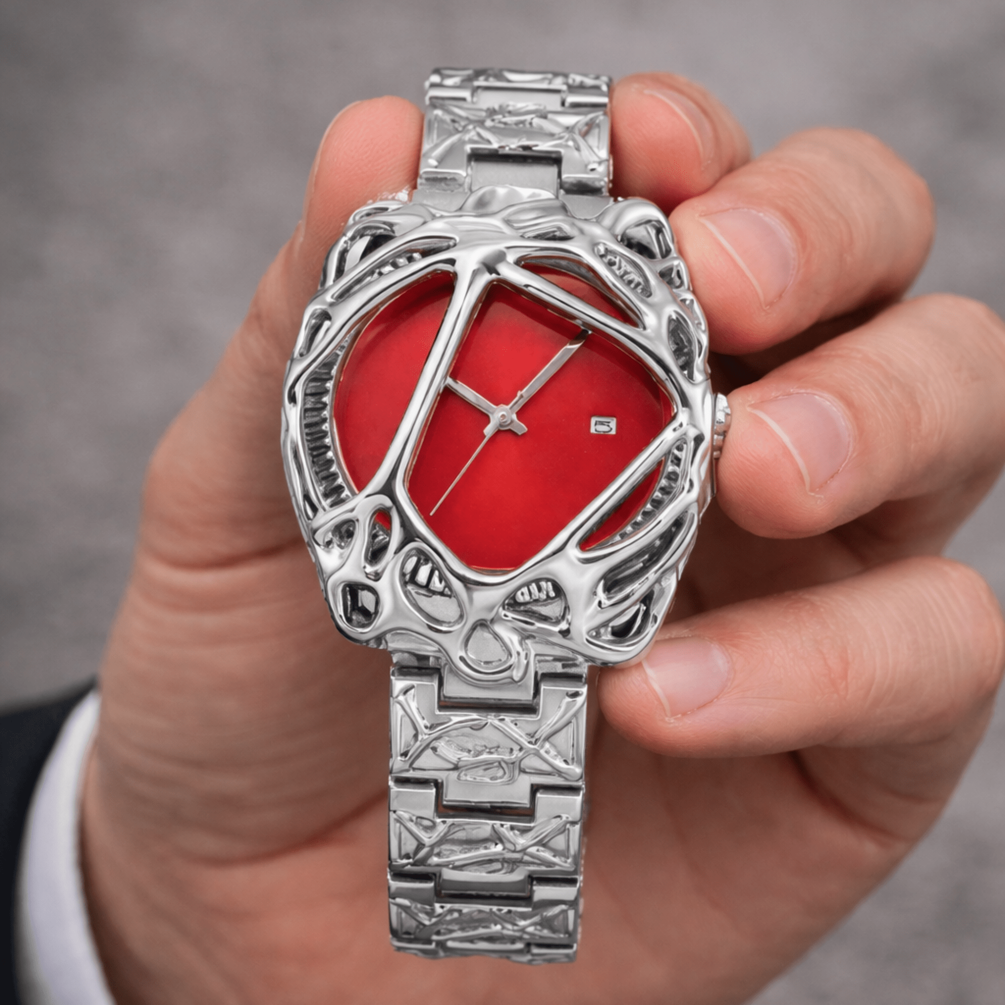 Make a bold statement with this striking mens watch featuring a unique silver plated bracelet design and vivid red dial. Built for standout style, this watch for men blends urban fashion with a luxury-inspired look that turns heads for everyday wear, nights out, special occasions, and gifting.
