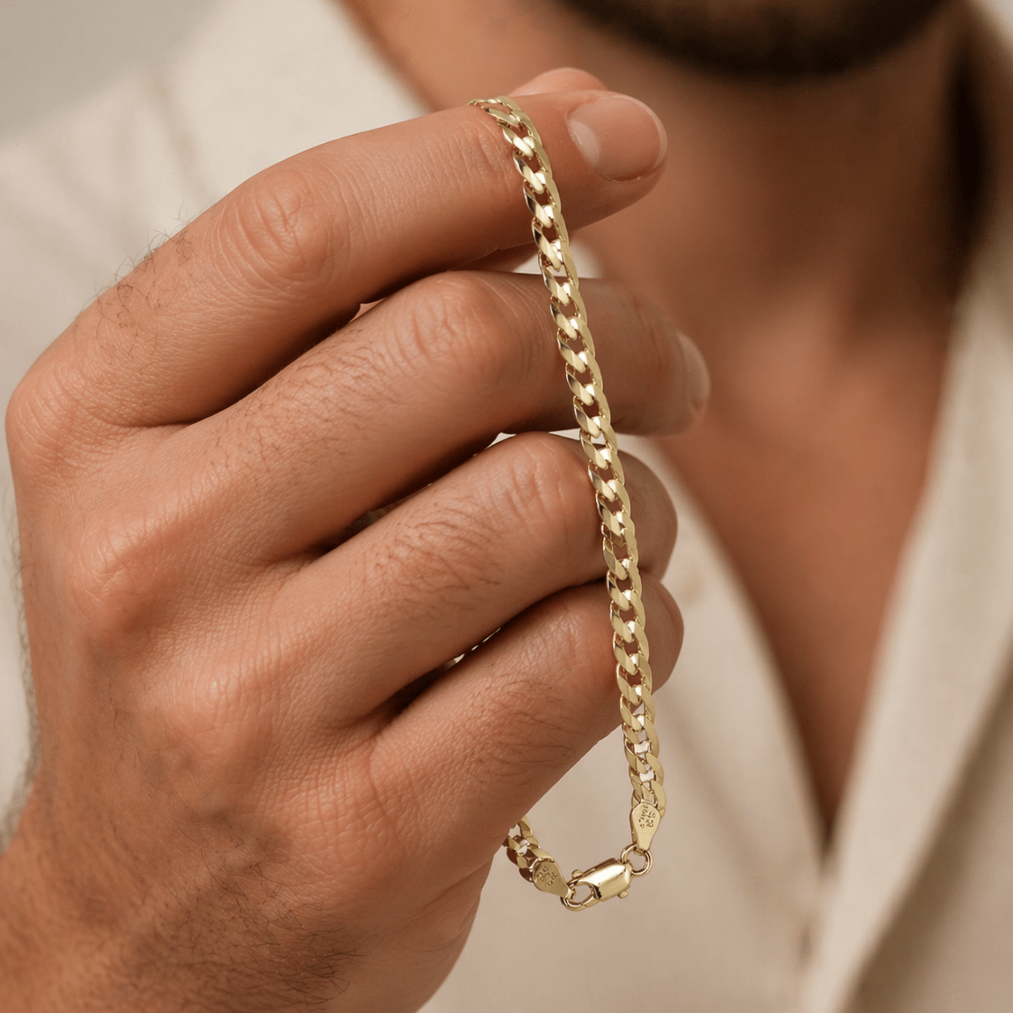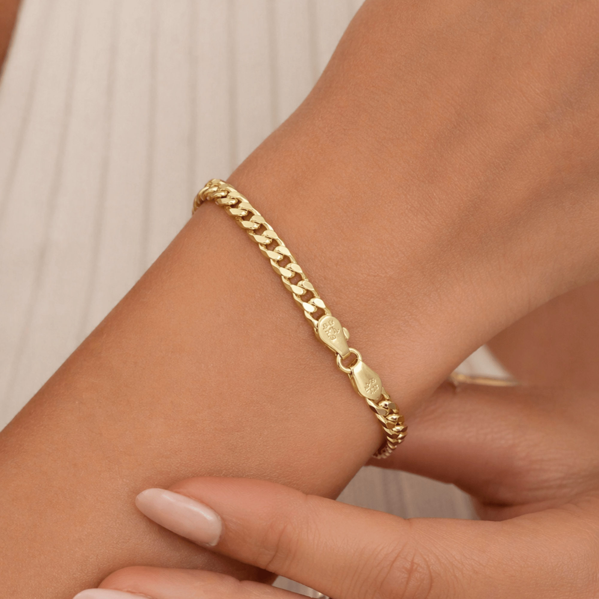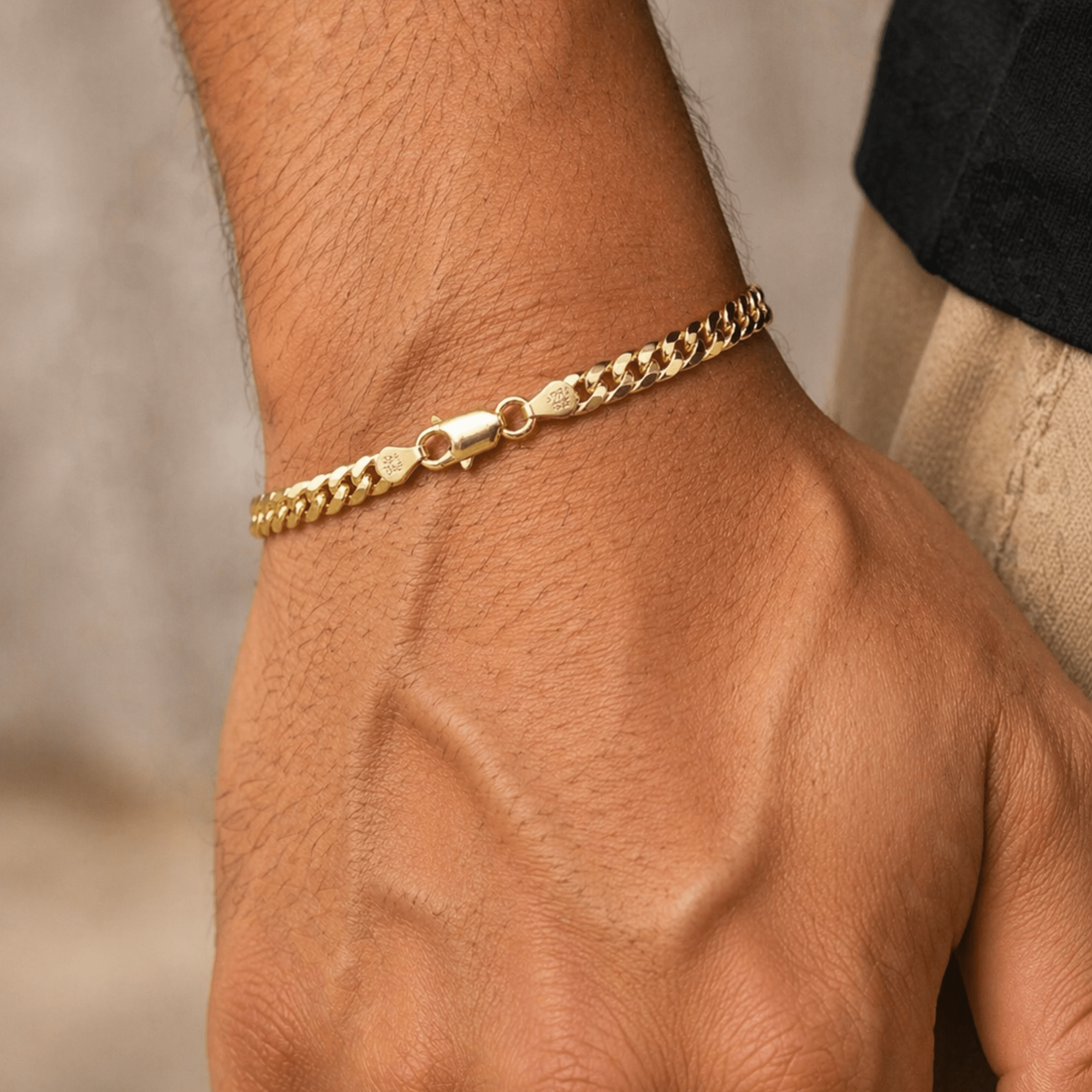 Upgrade your jewelry collection with this elegant Miami Cuban link bracelet crafted from real solid 925 sterling silver and finished in rich 14K gold plating for a bright, luxe shine. This timeless cuban link bracelet blends classic style with everyday wearability, making it a perfect gold cuban link for dressing up or layering with your favorite pieces.