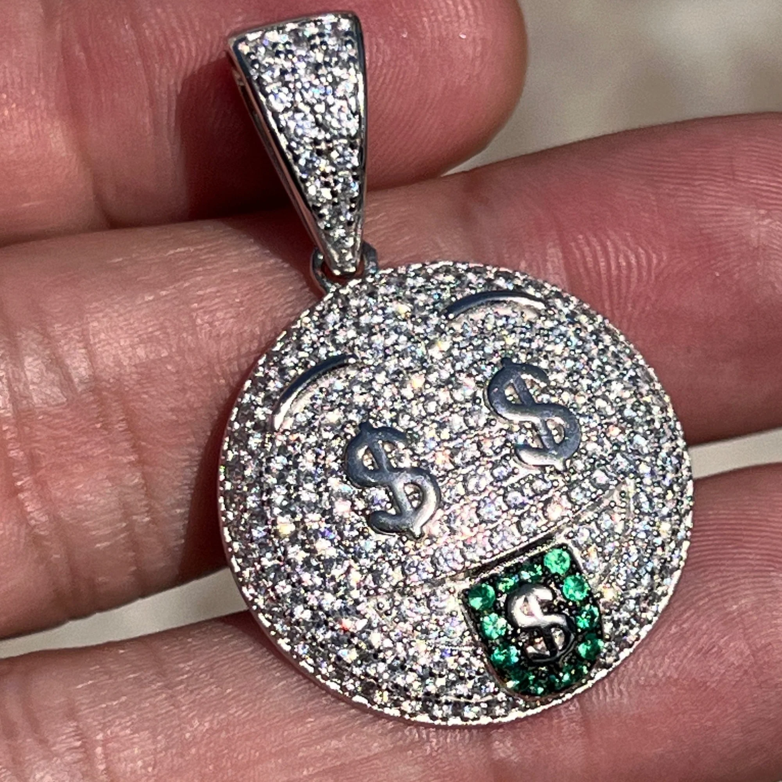 Real 925 Sterling Silver Money Mouth Emoji CZ Iced Out Pendant