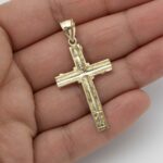 Solid 10K Gold 1 3/4″ Jesus Cross Pendant