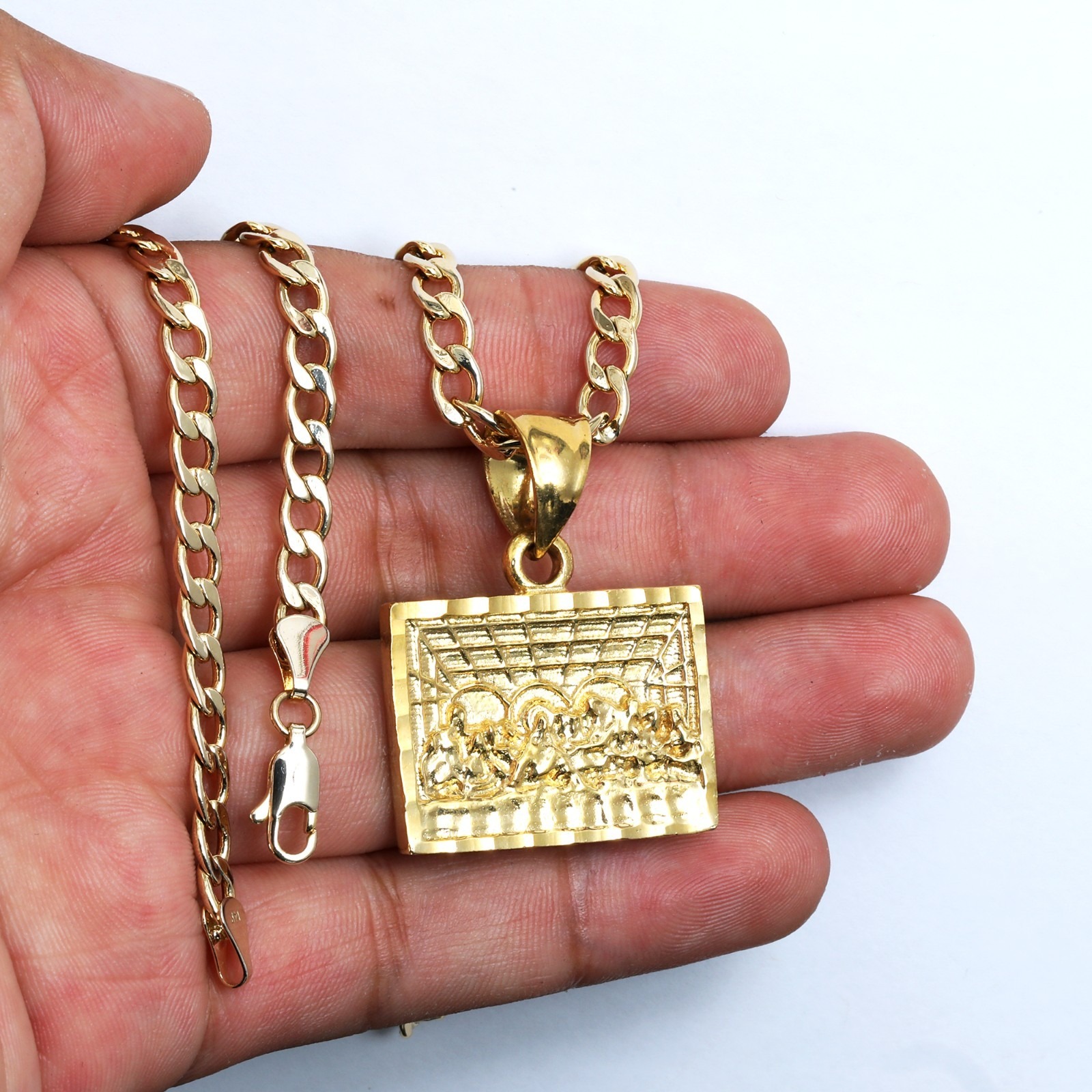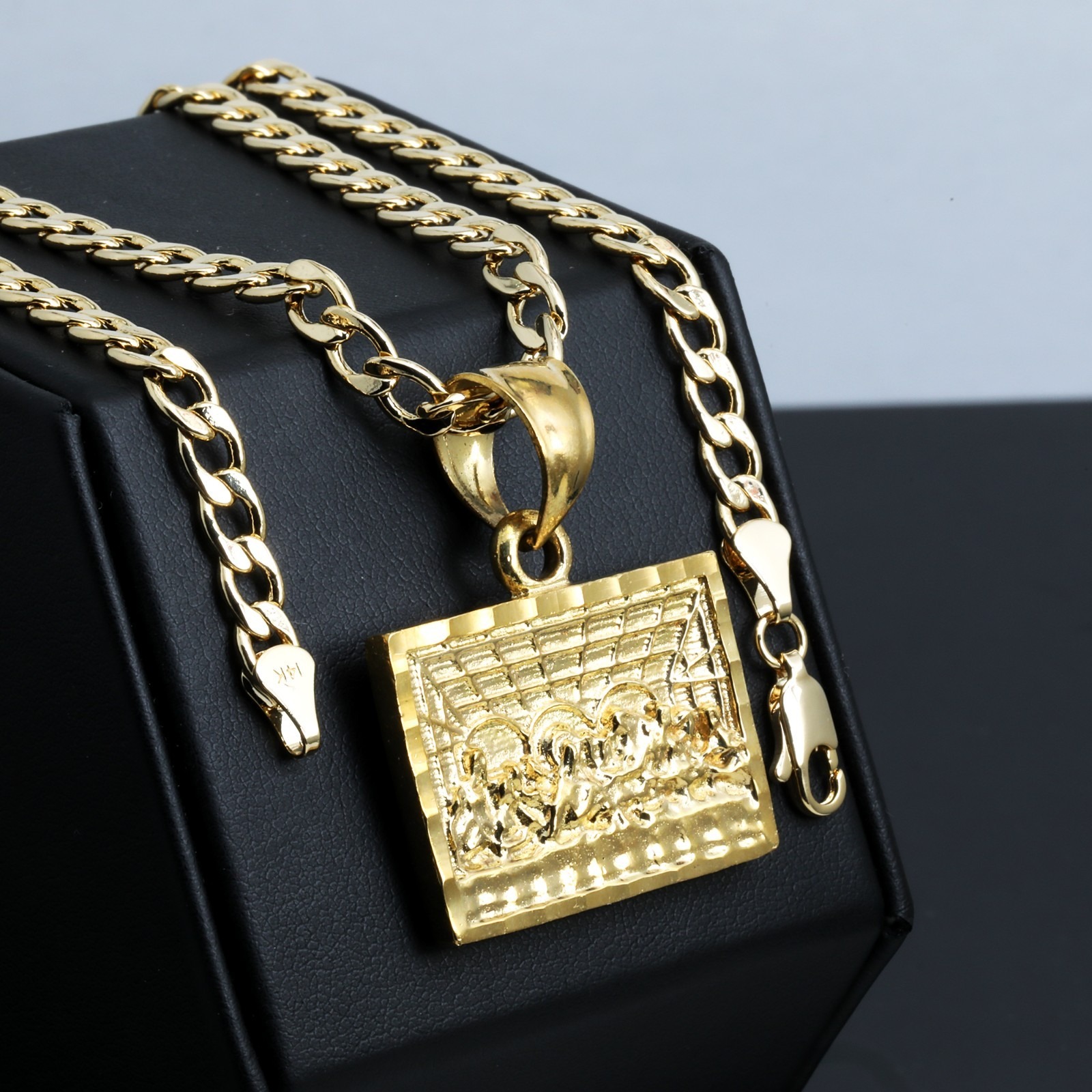 The tight links of the miami cuban chain create a bold, high-end look that pairs perfectly with the detailed Square Last Supper pendant. Wear it solo or layer it with other pieces — this cuban chain necklace delivers timeless streetwear style with spiritual meaning.