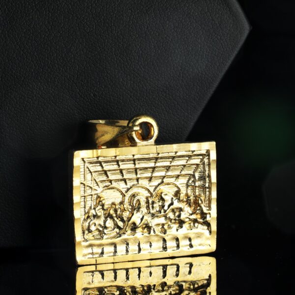 This premium Last Supper pendant features a detailed square design that stands out while maintaining a clean, luxury finish. The pendant comes attached to a 20-inch, 5mm cuban chain necklace, giving you a complete statement jewelry set right out of the box.